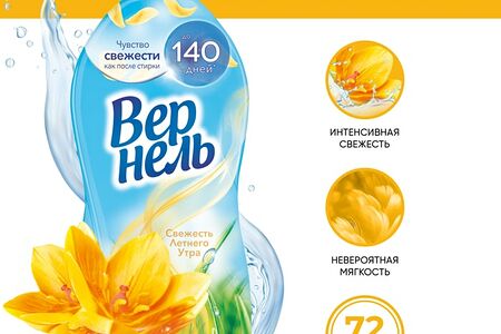 Концентрированный кондиционер для белья "Вернель Свежесть летнего утра" 1,8 л (72 стирки) подарит белью не только невероятную мягкость, но и легкий пробуждающий аромат. Преимущества кондиционера для белья "Вернель": средство "Вернель" имеет концентрированную формулу, обеспечивающую мягкость и свежесть белью. Благодаря специальным аромакапсулам в составе кондиционер для стирки "Вернель" позволит наслаждаться интенсивным ароматом белья до 140 дней. Кондиционер для стирки облегчает глажку и обладает антистатическим эффектом.