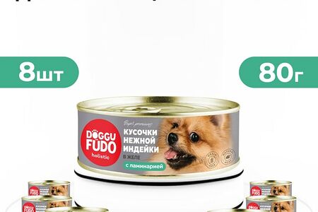 Влажный корм для собак Doggufudo Holistic Кусочки нежной индейки в желе с ламинарией 8*80г доставка