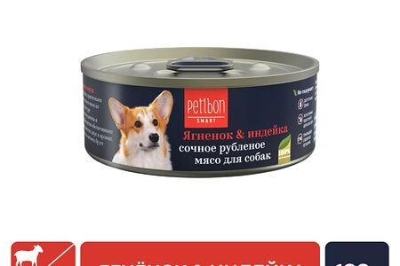 Влажный корм для собак Petibon Smart Рубленое мясо с ягненком и индейкой 100г доставка