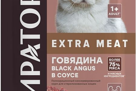 Влажный корм для стерилизованных кошек Мираторг Extra Meat Говядина Black Angus в соусе 80г доставка