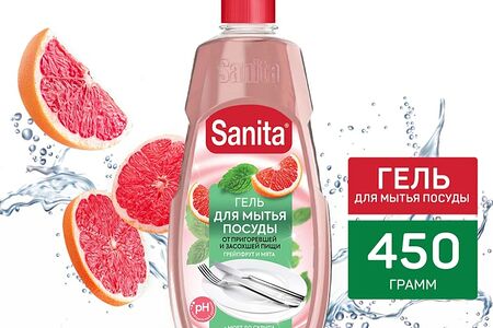 Средство для мытья посуды Sanita Грейпфрут + Мята 450г доставка