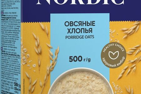 Хлопья Nordic Овсяные 500г сделаны по уникальной финской технологии из 100% цельного зерна, поэтому сохранили все полезные и вкусовые качества натурального овса. Это ценный источник клетчатки, фосфора, кальция, магния, йода, витаминов группы В, А и Е, а также насыщенных жирных кислот. Экспресс-хлопья можно готовить двумя способами: варить в кипящей воде или молоке в течение 1 минуты, а потом настаивать 2 минуты, или заливать кипятком и настаивать 5 минут. Готовая каша прекрасно сочетается со свежими фруктами и ягодами, медом или вареньем.