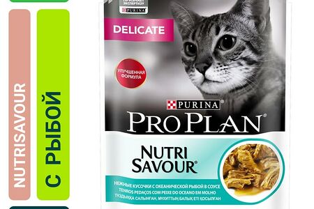 Влажный корм для кошек Pro Plan Nutri Savour Delicate для чувствительного пищеварения кусочки в соусе с океанической рыбой 85г доставка