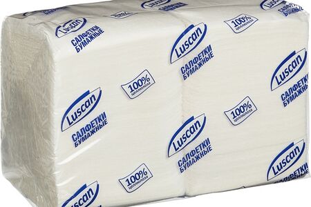 Однослойные салфетки Luscan белого цвета с тиснением. Сложены вчетверо, могут использоваться в повседневном быту, на офисной кухне и различных увеселительных мероприятиях, в столовых, в кафе, в ресторанах. Изготовлены из 100%-ной целлюлозы. Поставляются в полиэтиленовой упаковке по 400 шт. Размеры развернутой салфетки: 24*24см.