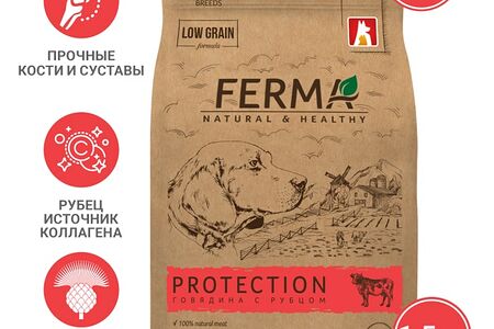 Сухой корм для собак Ferma Protection для мелких и средних пород Говядина с рубцом 1.5кг доставка