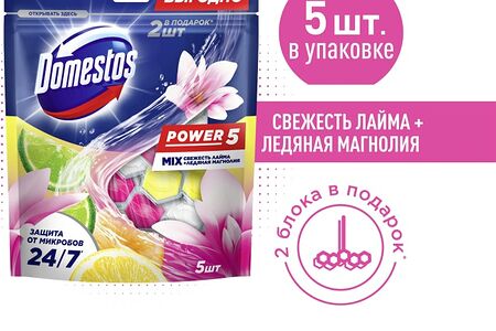 Блок туалетный Domestos Power 5 Свежесть лайма ледяная магнолия 5*50г доставка