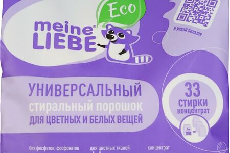 Концентрированный стиральный порошок Meine Liebe универсальный 1кг - это безопасное, экологически чистое средство для стирки вещей из цветных и белых тканей любого типа, кроме шерсти и шелка. Оно обеспечивает вашим вещам бережный и эффективный уход, защищает волокна ткани от разрушения, способствует сохранению первоначального цвета и формы изделия. Оптимальное сочетание энзимов справляется даже с трудновыводимыми и сложными пятнами. Специальные компоненты защищают нагревательные элементы машины от накипи. Можно использовать при температуре от 30 до 90 С. Быстро растворяется в воде и полностью вымывается из тканей. Порошок не содержит фосфатов, формальдегидов, хлора и агрессивных веществ; не наносит вреда окружающей среде. Экономичный расход: такой упаковки вам хватит на 28 стирок (мерная ложечка внутри). Подходит для ручной и автоматической стирки. Продукт становился победителем программы "Контрольная закупка".