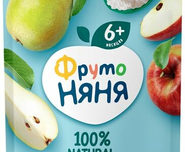 Пюре ФрутоНяня из яблок и груш с творогом 90г полезное лакомство для малышей. Рекомендовано к употреблению детям старше 6 месяцев. Удачное сочетание спелых фруктов с творогом превращает обычное пюре в лакомый десерт. Является источником натуральной клетчатки, витаминов и кальция. Незаменимый продукт для вкусного и полезного перекуса. Его удобно брать с собой благодаря мягкой упаковке. Для кормления не потребуется ложка, ведь пакетик имеет дозатор. Ребенок без труда сможет покушать сам под присмотром взрослых. Разноцветные крышечки можно копить, ведь они соединяются между собой, превращаясь в увлекательный конструктор.