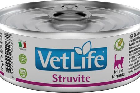Показания к применению: растворение и подавление образования струвитных уролитов. Подкисление мочи. Farmina Vet Life Struvite — полнорационный диетический влажный корм для кошек для лечения и профилактики рецидивов струвитного уролитиаза. Farmina Vetlife Natural Diet является первой натуральной ветеринарной диетой и использует только натуральные антиоксиданты, экстракт токоферолов, которые позволяют сохранить продукт естественным образом. Отсутствие ГМО. Зерновые (спельта и овес) с низким гликемическим индексом, модулирующим постпрандиальный гликемический ответ.