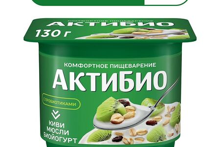 Био йогурт АКТИБИО Blactis с бифидобактериями киви мюсли 3% 130г доставка