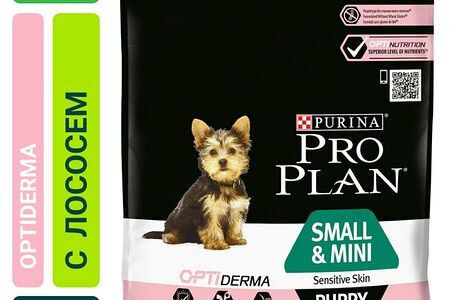 Сухой корм для щенков Pro Plan Optiderma Small&Mini Puppy Sensitive Skin для мелких пород для здоровья кожи и шерсти с лососем 700г доставка