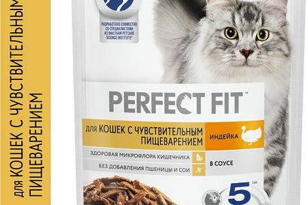 Влажный корм для кошек Perfect Fit полнорационный для чувствительного пищеварения с индейкой в соусе 75г доставка