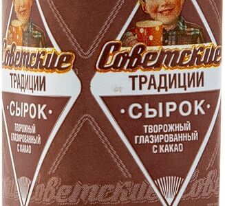 Сырок глазированный Советские традиции с какао 26% 45г классическое лакомство, изготовленное в соответствии с рецептурой ГОСТ. Натуральный творог смешивают с какао, сахаром и прочими компонентами, а затем из получившейся массы формируют небольшие батончики. Сверху десерт обильно поливают шоколадной глазурью. Сырок непременно понравится и детям, и взрослым, отлично подойдет для перекуса, украсит любое чаепитие. Упаковка из фольги сохраняет свежесть и питательную ценность в пределах всего срока годности. Завод по производству продукции бренда расположен в экологически чистом Пушкинском районе Подмосковья. Все продукты проходят многоступенчатый контроль, осуществляемый собственной аккредитованной лабораторией.