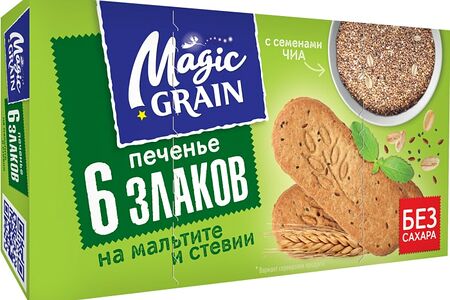 Печенье Magic Grain сдобное 6 злаков на мальтите и стевии 160г доставка