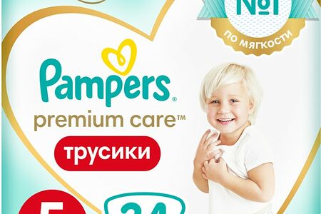 Подгузники трусики Pampers Premium Care 5 размер / 12-17кг ультрамягкие 34шт доставка