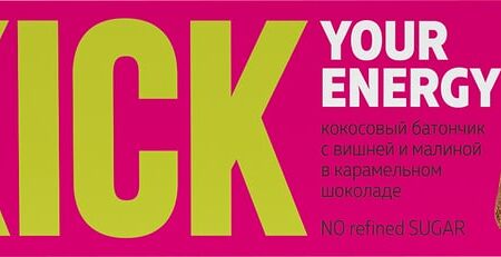 Батончик Kick your energy с вишней и малиной в карамельном шоколаде 45г доставка