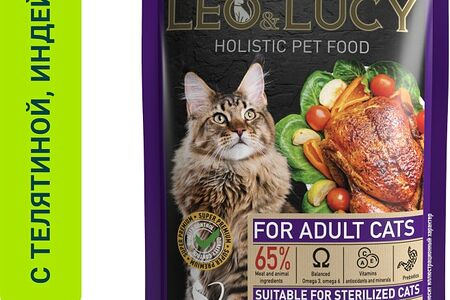 Влажный корм для кошек Leo&Lucy с телятиной индейкой и биодобавками подходит для стерилизованных 85г доставка