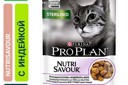 Влажный корм для стерилизованных кошек Pro Plan Nutri Savour Sterilised кусочки в желе с индейкой 85г доставка