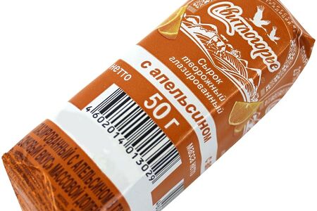 Сведения о составе: Творог, сахар-песок, глазурь кондитерская «Апельсиновый вкус», (сахар, заменитель какао-масла – лауриновый (CBS), сыворотка молочная сухая, эмульгатор – летицин, ароматизатор пищевой, регулятор кислотности – кислота лимонная, краситель – бета-каротин), сливочное масло, апельсин, ароматизатор пищевойПищевая ценность: 390,7.1,25.5,32.0Условия хранения: 6,2Срок годности в днях: 30Страна изготовления: РоссияСведения об упаковке: ОберткаПроизводитель: Дмитровский МЗ