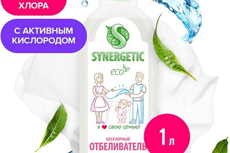 Отбеливатель Synergetic 1л производится на основе комплекса растительных тензидов из глюкозы и активного кислорода. Эффективно отбеливает все типы тканей и детское белье, не повреждая структуру. Экологичный и безопасный концентрат подходит как для предварительного замачивания особо грязных вещей, так и в качестве добавки к обычным моющим средствам. Не содержит хлора, красителей и ароматизаторов. Полностью вымывается из волокон ткани, не вредит септиками и микроорганизмам, живущим в них.