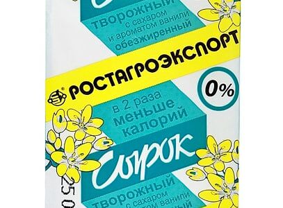 Сведения о составе: Творог обезжиренный, сахар-песок, ароматизатор идентичный натуральному - ванилинПищевая ценность: 116,16,13Условия хранения: 6,2Срок годности в днях: 24Страна изготовления: РоссияСведения об упаковке: ОберткаПроизводитель: РостАгроКомплекс