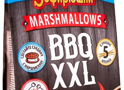 Зефир Зефирюшки BBQ XXL воздушный 200г – уникальный формат маршмеллоу, разработанный специально для отдыха на природе. Продукт производится на современной российской фабрике без использования искусственных красителей и ароматизаторов. Насадите кусочки зефира на палочку или шампур, а затем подержите 1-2 минуты над огнем или углями. В результате теплового воздействия лакомство станет карамельно-хрустящим снаружи и нежно-тягучим внутри. А для вашего удобства в комплект уже входят 5 деревянных шпажек для жарки. Стоит отметить, что десерт не содержит фруктово-ягодных пюре, яичного белка и глютена, способных вызывать аллергические реакции. Благодаря герметичной упаковке маршмеллоу остается свежим и мягким в течение всего срока годности.