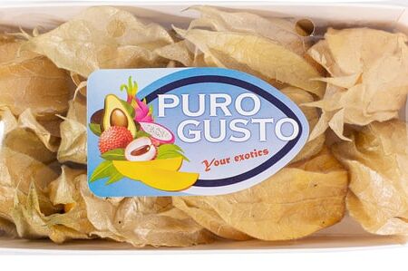 Физалис Puro Gusto Колумбия 100г – спелые экзотические ягоды в природной оболочке. Они имеют ярко-желтый окрас и тонкую кожицу, под которой скрывается сочная мякоть с приятным земляничным вкусом. Перед употреблением просто освободите их от «чашечек» и промойте. Эти небольшие шарообразные плоды обладают противовоспалительными, болеутоляющими и антисептическими свойствами, способствуют очищению организма от токсинов, помогают укрепить иммунную систему. Особенно хороши они в свежем виде, однако могут также использоваться для приготовления джема, сладких блюд и десертов.