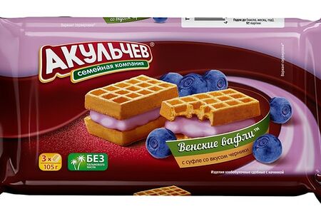 Вафли Акульчев Венские черника с суфле 105г доставка