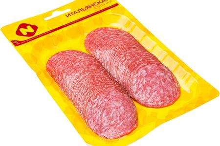 Колбаса Останкино Салями Итальянская сырокопченая в нарезке 150г приготовлена по оригинальной рецептуре Останкинского мясоперерабатывающего завода из свинины и шпика с добавлением ароматных пряностей. Срез аппетитного розового цвета с хаотичными вкраплениями мелкого шпика. Продукция бренда "Останкино" производится на новейшем оборудовании из Германии и Австрии, в качестве сырья используется охлажденное мясо и натуральные специи, копчение происходит на натуральной щепе лиственных деревьев. Упакована под вакуумом, готова к сервировке.