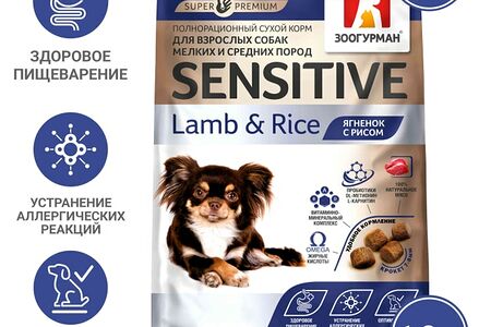 Сухой корм для собак Зоогурман Sensitive Ягненок с рисом 1.2кг доставка