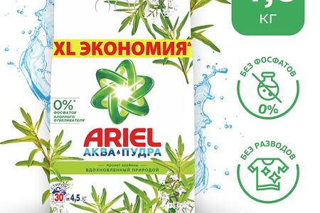 Стиральный порошок Ariel Аквапудра Вербена автомат 30 стирок 4.5кг растворяется, едва коснувшись воды, и моментально активируется: удаляет трудновыводимые пятна, глубоко проникая в структуру волокон, и не дает загрязнениям въедаться. Порошок устраняет загрязнения, вызывающие неприятные запахи, такие как запах пота и тела, придавая одежде приятный аромат и сияющую чистоту даже на воротничках и манжетах рубашек. Все активные компоненты полностью биоразлагаемы.
