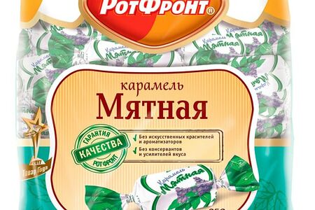 Карамель Мятная 250г - это известный леденец с освежающим ароматом душистой мяты, произведенный на одном из старейших кондитерских предприятий России "Рот Фронт" (в 2016 году фабрике исполнилось 190 лет). Продукт может употребляться в Пост. Каждая конфета упакована в индивидуальную обертку, поэтому вам будет удобно отсыпать горсть в карман или сумочку, чтобы потом угостить своих друзей или коллег и полакомиться самому. При хранении рекомендуется избегать попадания прямых солнечных лучей. Не содержит красителей.