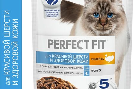 Влажный корм для кошек Perfect Fit полнорационный для красивой шерсти и здоровой кожи с индейкой в соусе 75г доставка