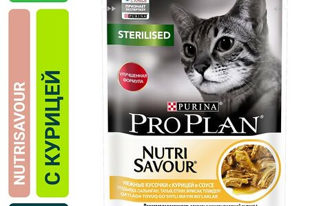 Влажный корм для стерилизованных кошек Pro Plan Nutri Savour Sterilised кусочки в соусе с курицей 85г доставка