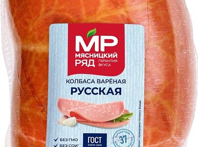 Колбаса Мясницкий Ряд Русская приготовлена из отборной говядины и свинины с добавлением шпика. Срез структурный, аппетитного нежно-розового цвета, с небольшими фрагментами шпика по всей массе. Тонкий ломтик такой колбасы с поджаренным тостом и омлетом станет отличным питательным началом дня для всех членов семьи. Продукция Одинцовского мясокомбината производится из высококачественного мясного сырья и натуральных специй на оборудовании немецких фирм. Упаковка сделана из экологически чистых материалов. Все этапы производства проходят строгий ежедневный контроль качества.