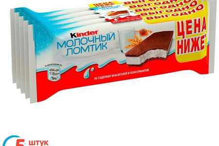 Пирожное Kinder Молочный ломтик 5шт*28г это вкусное дополнение к любому завтраку, обеду или ужину! В нем есть все, что так любят дети: капелька меда, натуральное молоко (40%) и нежный бисквит. Команда экспертов Kinder использует инновационные технологии и проверяет сырьё на каждом этапе производства, что позволяет обеспечить высочайшее качество и отменный вкус ваших любимых продуктов. Благодаря компактному размеру и герметичной упаковке пирожное можно дать ребенку с собой в школу, секцию или на прогулку. Производитель гарантирует отсутствие красителей и консервантов. При комнатной температуре лакомство быстро портится, поэтому обязательно храните его в холодильнике. Продается упаковкой из 5 штук.