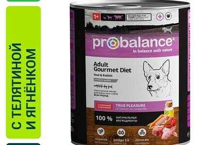 Влажный корм для собак Probalance с телятиной и кроликом 850г доставка