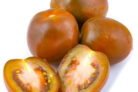 Помидоры Кумато 350г – спелые овощи, которые отлично подойдут для употребления в свежем виде. Плоды этого сорта имеют средний размер: их вес варьируется от 80 до 125г. В незрелом состоянии они имеют темно-зеленый окрас, а на стадии спелости становятся красно-коричневыми и даже фиолетовыми. Мякоть у этих томатов – плотная и сочная, вкус – сладкий, с приятной кислинкой, аромат – свежий, с нотками арбуза. Плоды богаты витаминами, микроэлементами, клетчаткой и ликопином. Они очень полезны для людей, имеющих проблемы с сердечно-сосудистой системой, а также всем, кто стремится подольше сохранить молодость и нормализовать обмен веществ. Помидоры «Кумато» не рекомендуют подвергать термической обработке, так как они потеряют свой уникальный вкус.