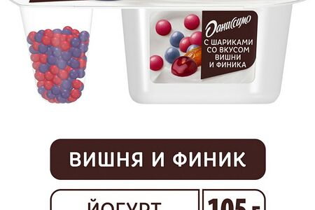 Йогурт Даниссимо Фантазия с шариками в белой шоколадной со вкусом вишни и финика 6.9% 105г доставка