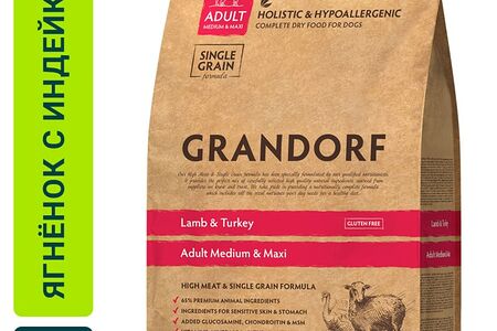 Сухой корм для собак Grandorf Adult Medium & Maxi для средних и крупных пород с ягненком и индейкой 3кг доставка