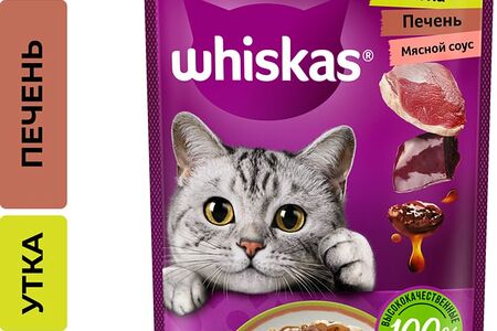 Влажный корм для кошек Whiskas Аппетитный микс мясной соус утка печень 75 г — полноценное питание, состоящие из различных сортов мяса и густой ароматной подливы. Разнообразие текстур гарантирует отличную поедаемость, а сбалансированная формула учитывает повседневные потребности кошек в питательных веществах, необходимых для развития животного и поддержания здоровья его мышц, костей, зубов, шерсти, зрения и иммунной системы. Не содержит усилителей вкуса и искусственных красителей. Следите за тем, чтобы в миске питомца всегда была свежая вода. Подходит для стерилизованных животных.