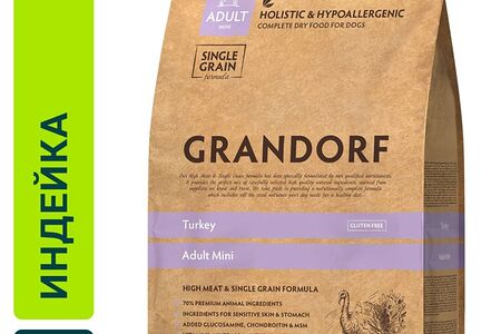 Сухой корм для собак Grandorf Adult Mini для мелких пород с индейкой и рисом 3кг доставка