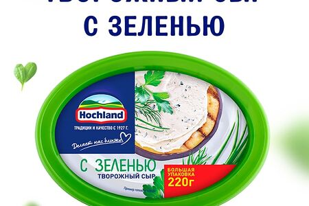 Сыр творожный Hochland с зеленью, 60%, 220г нежный продукт, сочетающий в себе вкус сливочного творога и молодого сыра с пикантной ноткой свежей зелени. Готовится он из натурального молока и отлично подходит для всей семьи. Сыр обладает приятной пластичной консистенцией, легко намазывается на хлеб, горячие тосты и хрустящие крекеры. Он идеален для приготовления начинки для пирогов, блинчиков, пирожков, равиоли, творожно-сырной лепешки. Благодаря аромату зелени и сливочному вкусу хорошо сочетается с овощами, используется в качестве одного из компонентов для соусов к мясу и как основа сложных бутербродов. Творожный сыр это баланс нежного вкуса и пользы творога. Продукт заключен в аккуратную ванночку, сделанную из безопасного пищевого пластика. Сверху упаковка накрыта фольгированной мембраной и герметичной крышкой.