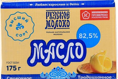 Масло сливочное Рузское Традиционное 82.5% 175г приготовлено по старинной технологии взбивания сливок в маслобойке. Для его производства используются только натуральные сливки, полученные из молока Рузских коров. Производство находится в экологически чистом районе Московской области, где нет промышленных предприятий, а коровы питаются травой, выращенной без удобрений и гербицидов. Продукт натуральный, не содержит растительных жиров, стабилизаторов, искусственных добавок и консервантов. Упаковывается сразу после охлаждения.