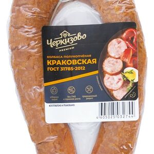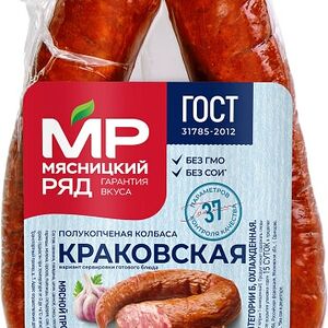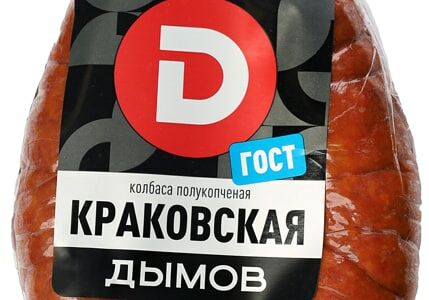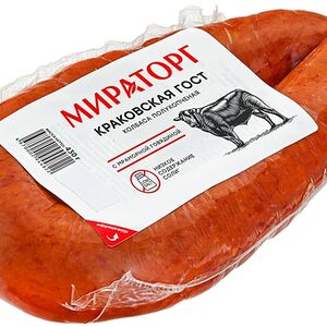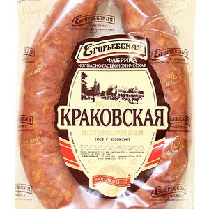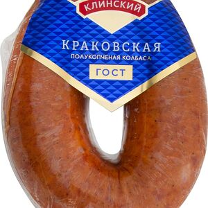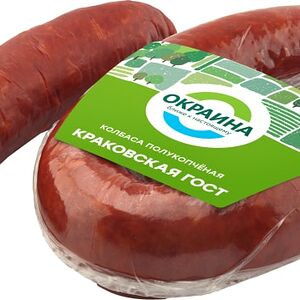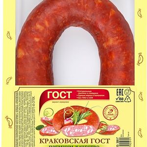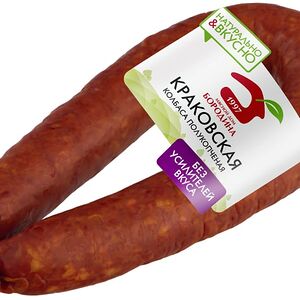 Колбаса Дымов Краковская полукопченая 400г высококачественное колбасное изделие, произведенное в соответствии с ГОСТом. В основе рецептуры - охлажденная свинина и отборная говядина, приправленные чесночком, душистыми пряностями и специями. Колбаса коптится на натуральной буковой щепе, в процессе чего приобретает неповторимый вкус и аромат. Идеально подходит для приготовления бутербродов, нарезок, солянки, запеканок. Не содержит ГМО и заменителей мяса. Вакуумная упаковка надежно сохраняет свежесть и вкусовые свойства в пределах всего срока годности. Секрет высокого качества продукции Дымов кроется в сочетании свежих отборных ингредиентов и современных технологий. Производитель строго контролирует все этапы: от приемки сырья до выпуска готовых продуктов в реализацию.