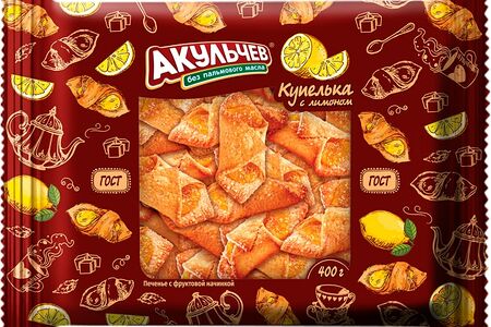 Печенье Акульчев Купелька сдобное с лимонной начинкой 400г доставка