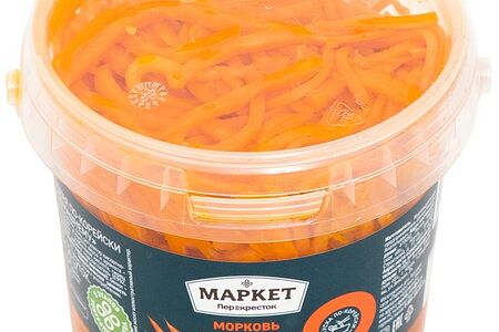Морковь Маркет Перекресток По-домашнему 300г – холодная закуска, которая украсит ваш стол и в будни, и в праздники. Делается из свежей моркови с добавлением специй, подсолнечного масла и прочих ингредиентов. Морковь – это ценный источник бета-каротина, который оказывает антиоксидантное действие, положительно влияет на работу мозга, повышает концентрацию внимания и улучшает память. Молотый перец чили придает морковке легкую пикантность, а душистый чеснок делает ее еще вкуснее и ароматнее. Продукция ТМ «Маркет Перекресток» производится из отборных ингредиентов и проходит 5 этапов контроля качества.