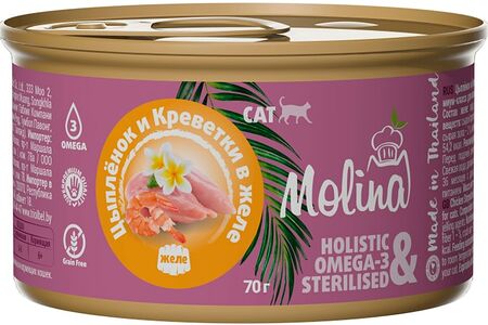 Влажный корм для кошек Molina Цыпленок и креветки в желе 70г доставка