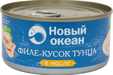 Тунец Новый океан Скипджек филе-кусок в масле 185г доставка