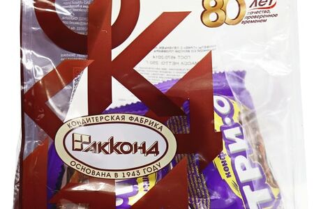Конфеты Акконд Трио с печеньем, карамелью и начинкой со вкусом пломбира 250г доставка